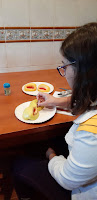 Apart from wearing customes about monsters, decorating our corridors, doing terrorifics worksheets and watching scary films.... Children at their homes cooked amazing desserts with their families and after they tasted their delicious snacks about Halloween but in an individual way in our school playground taking into account safe rules about Covid-19.